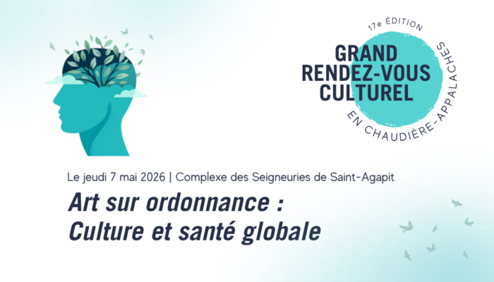 Cette édition portée par l’art, la culture et la santé sera l’occasion pour les artistes, les artisan.e.s et les acteur.rice.s culturel.le.s de Chaudière-Appalaches de réfléchir à la culture comme moyen de favoriser la santé globale et le bien-être dans les communautés.